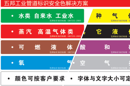 五邦專業提供管道標識、標簽、箭頭、色環的方案,制作,安裝服務,五邦24小時恭候您的來電