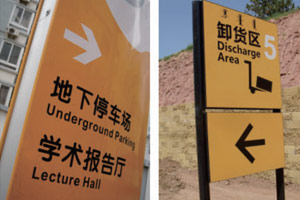 周圍環境中常看到導向型標識,設計時需注意:一是要為不熟悉環境的人著想,內容簡練簡潔以有效指引;二是設立在道路兩側,制作時突出功能實用性而非當裝飾品;三是色彩要符合規范要求,不能只追求視覺效果;四是秉承能用編碼、符號就不用文字原則,但意思要清晰明了,讓人快速了解信息。