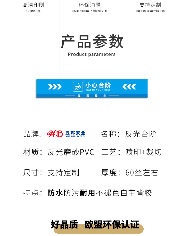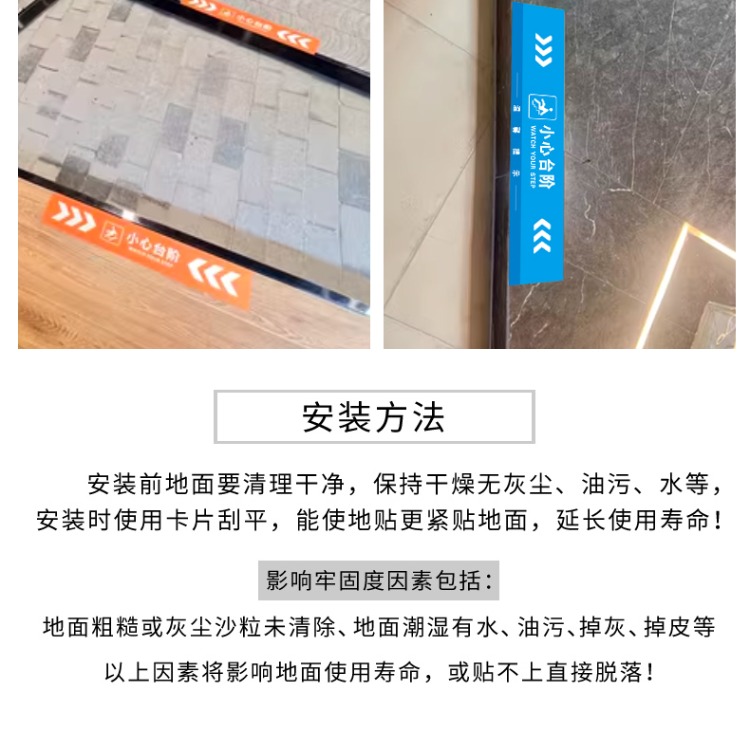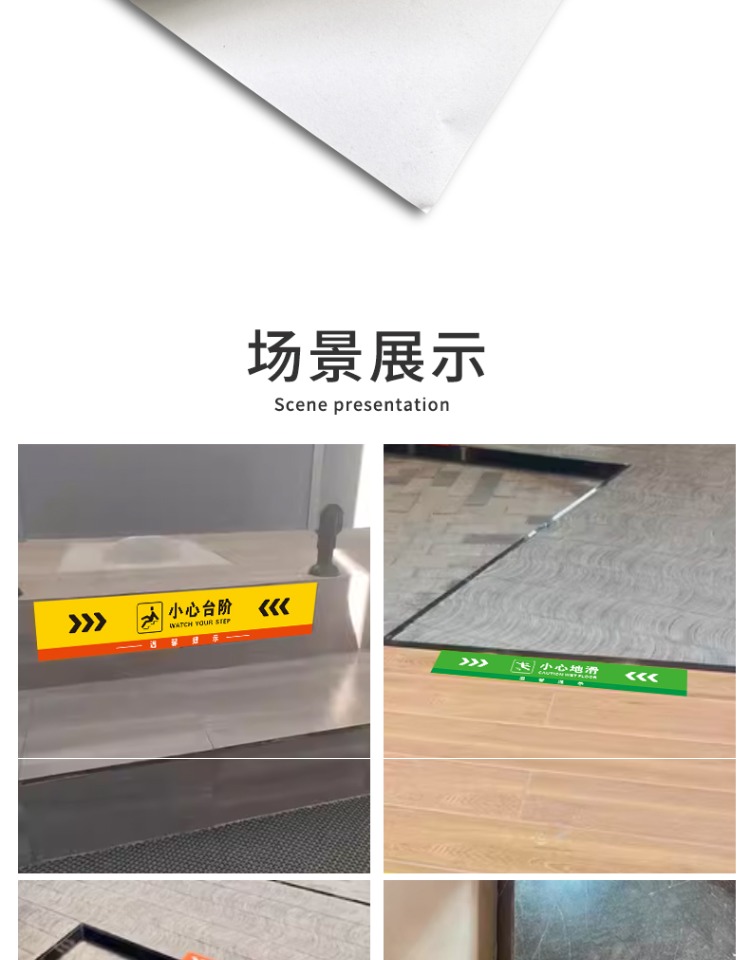 本系列安全提示貼,是您安全保障的貼心助手。“小心臺階”“地滑地貼”“注意臺階提示貼”等,適用于商場、衛生間、樓梯等場所。采用高品質材料制作,具有耐磨、耐臟、防水特性,自帶粘性,粘貼牢固。圖案設計醒目,文字警示清晰,能有效提醒行人注意臺階和地面狀況,減少滑倒、摔倒等意外發生。無論是保障商場顧客安全,還是維護辦公樓、學校等人員出行安全,都是您的理想選擇,為安全出行保駕護航。
