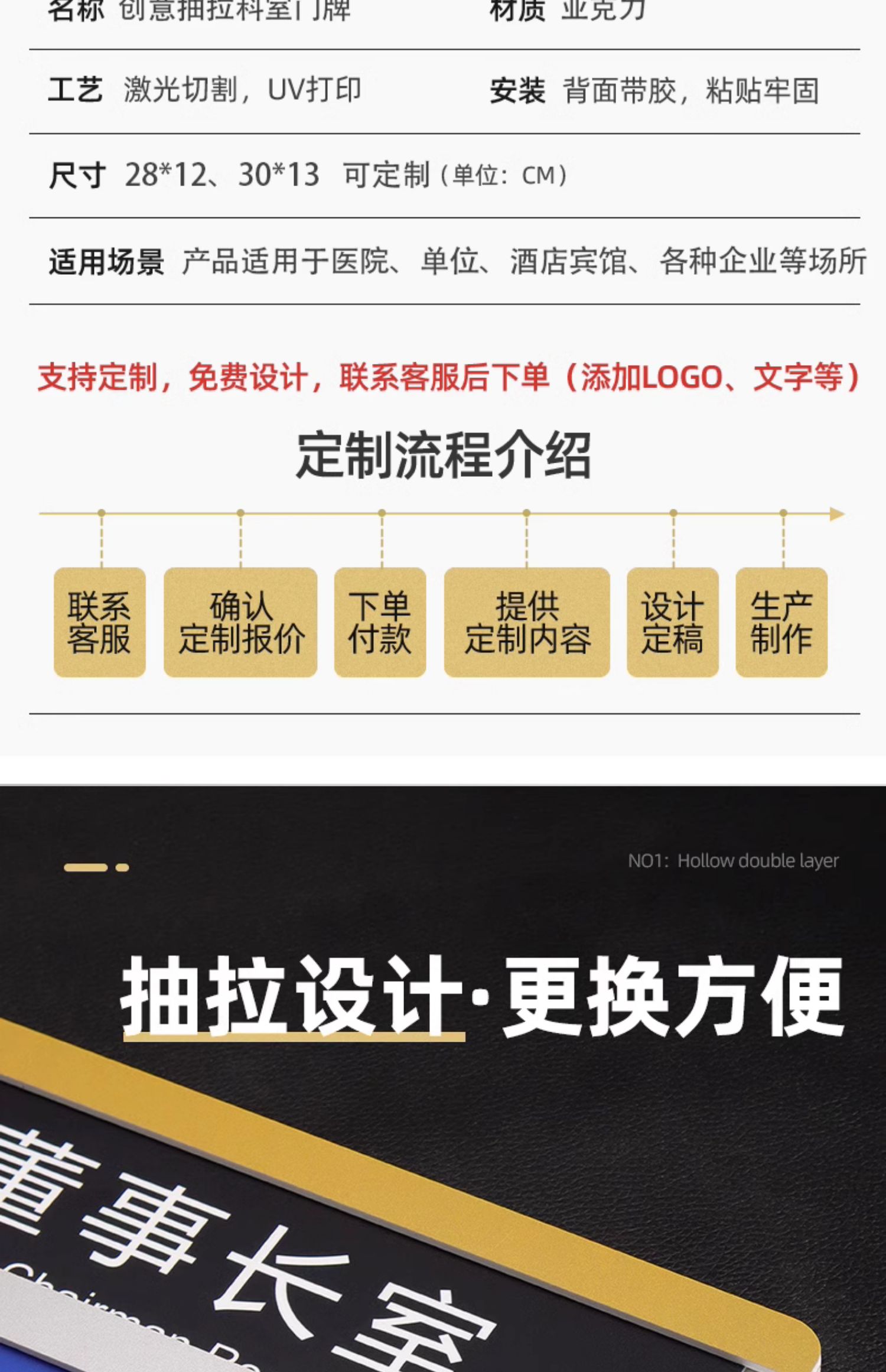 我們推出的亞克力可更換科室牌,專為現代辦公與學校環境設計。采用透明亞克力材質,搭配清晰印刷內容,美觀且耐用。獨特的替換式抽拉設計,讓科室名稱或信息變更變得輕松快捷,無需更換整塊標牌,節省成本又環保。適用于辦公室、公司部門及學校教室等多種場合,提升空間管理效率與視覺美感。