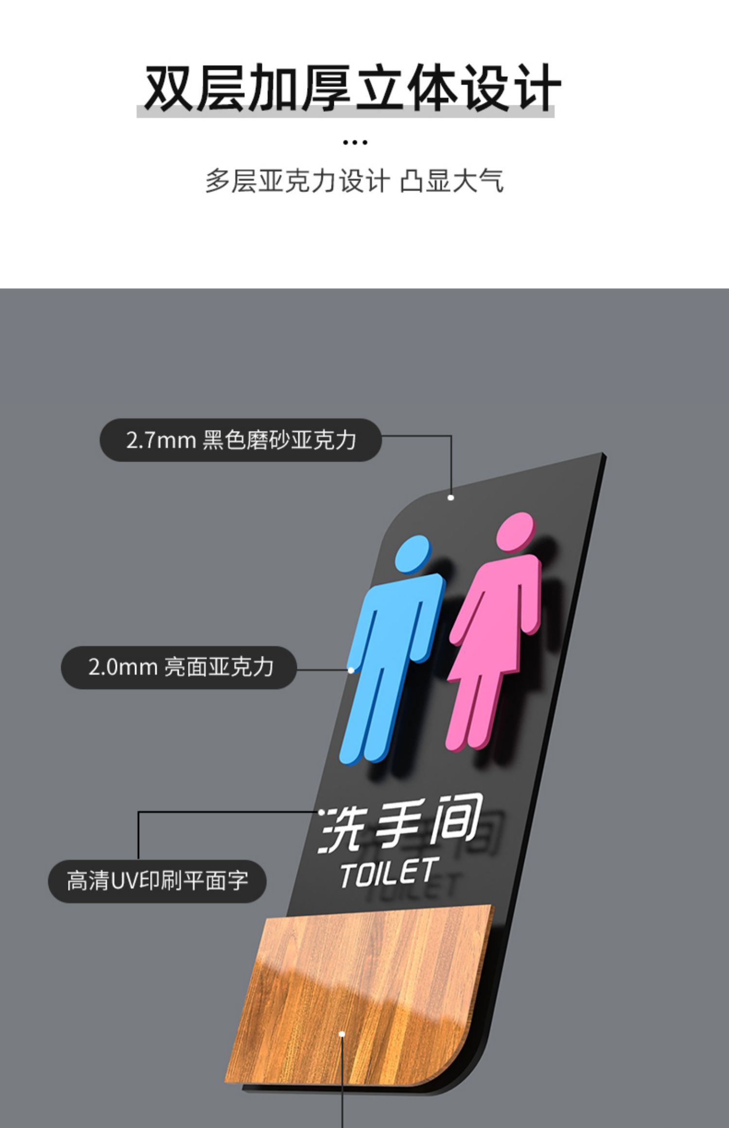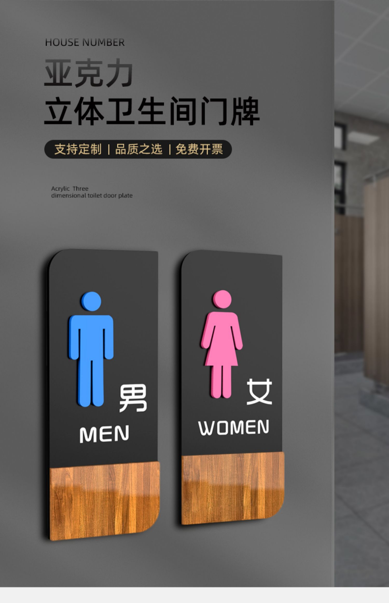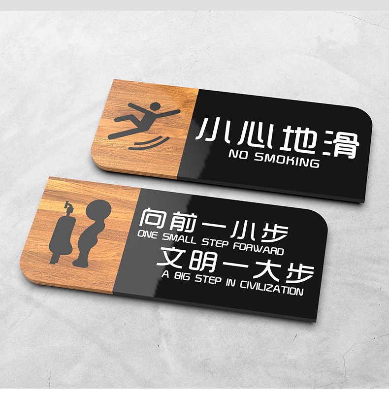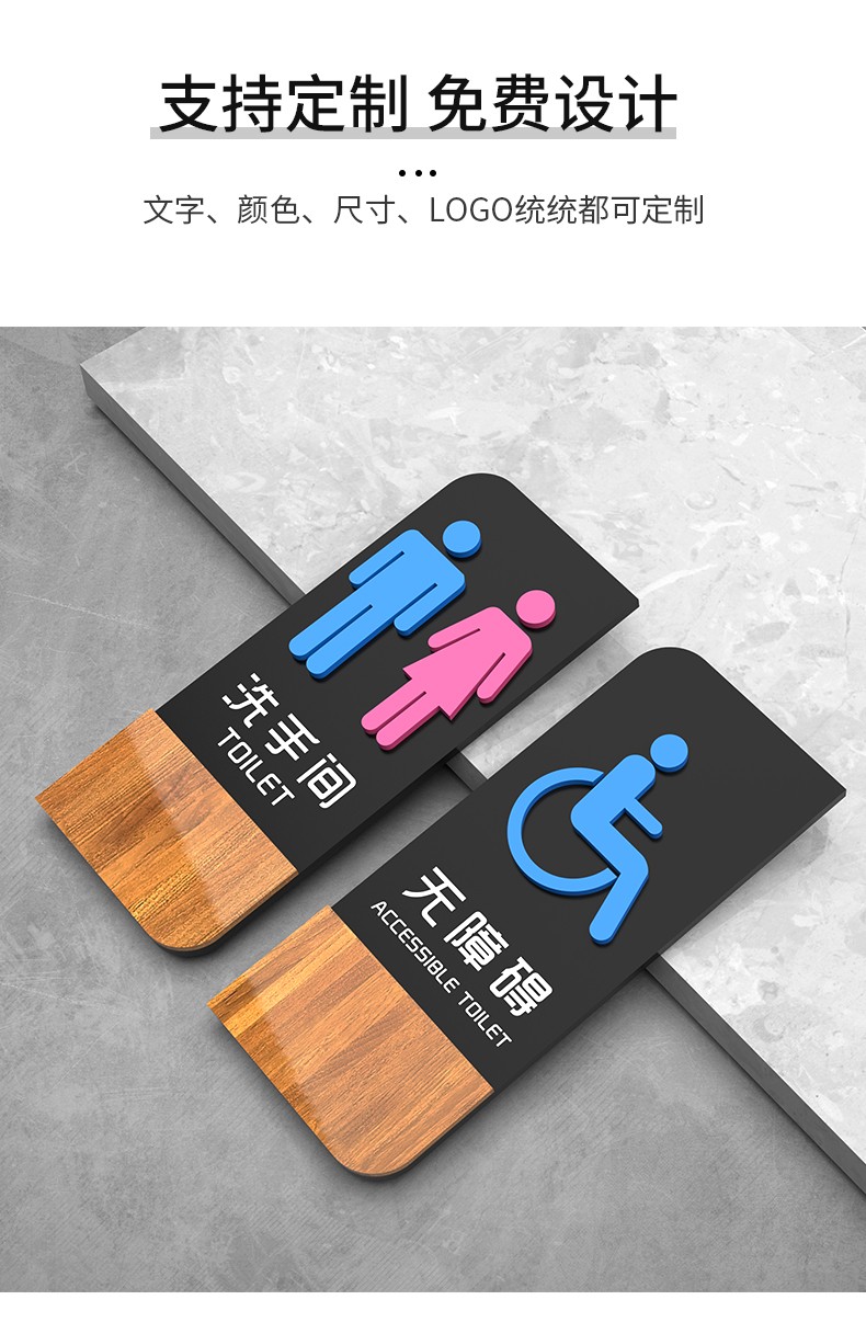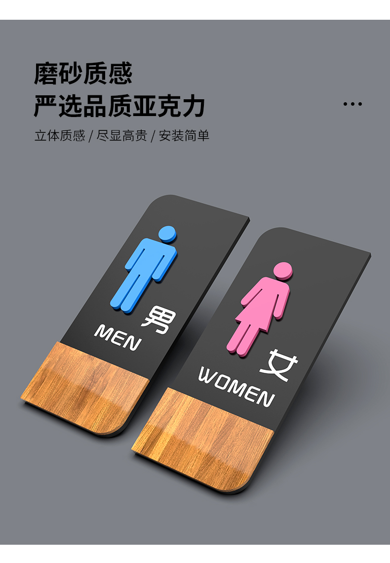 我們匠心獨運,推出木紋風格男女衛生間標識牌,將自然元素融入現代設計。采用高品質亞克力材質,模擬真實木紋質感,既環保又耐用。標識清晰,色彩鮮明,輕松指引方向。獨特的創意造型,為洗手間增添一抹溫馨與雅致。無論是商業場所、辦公大樓還是家庭住宅,都能完美融合,營造舒適便捷的如廁環境。
