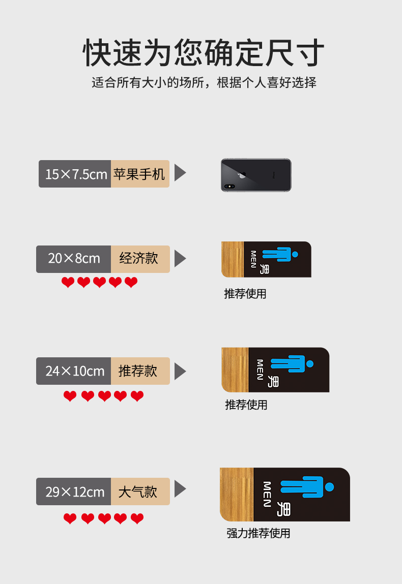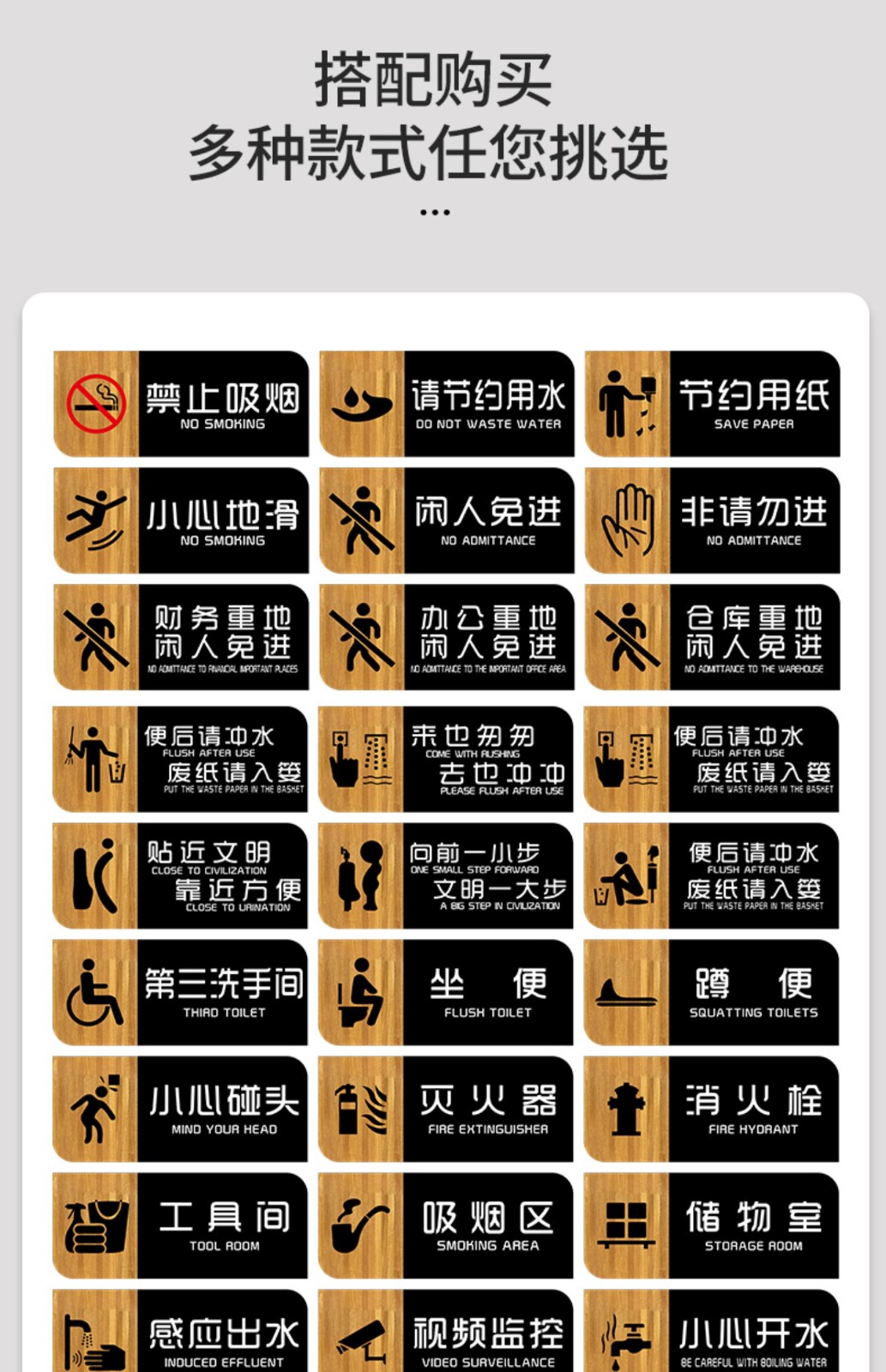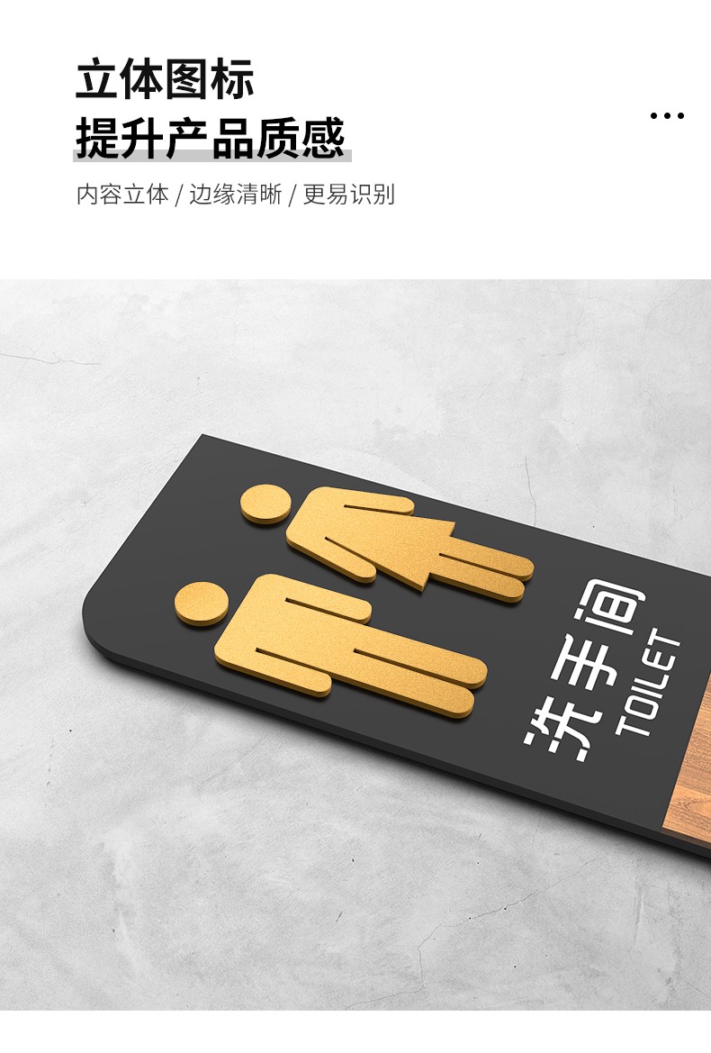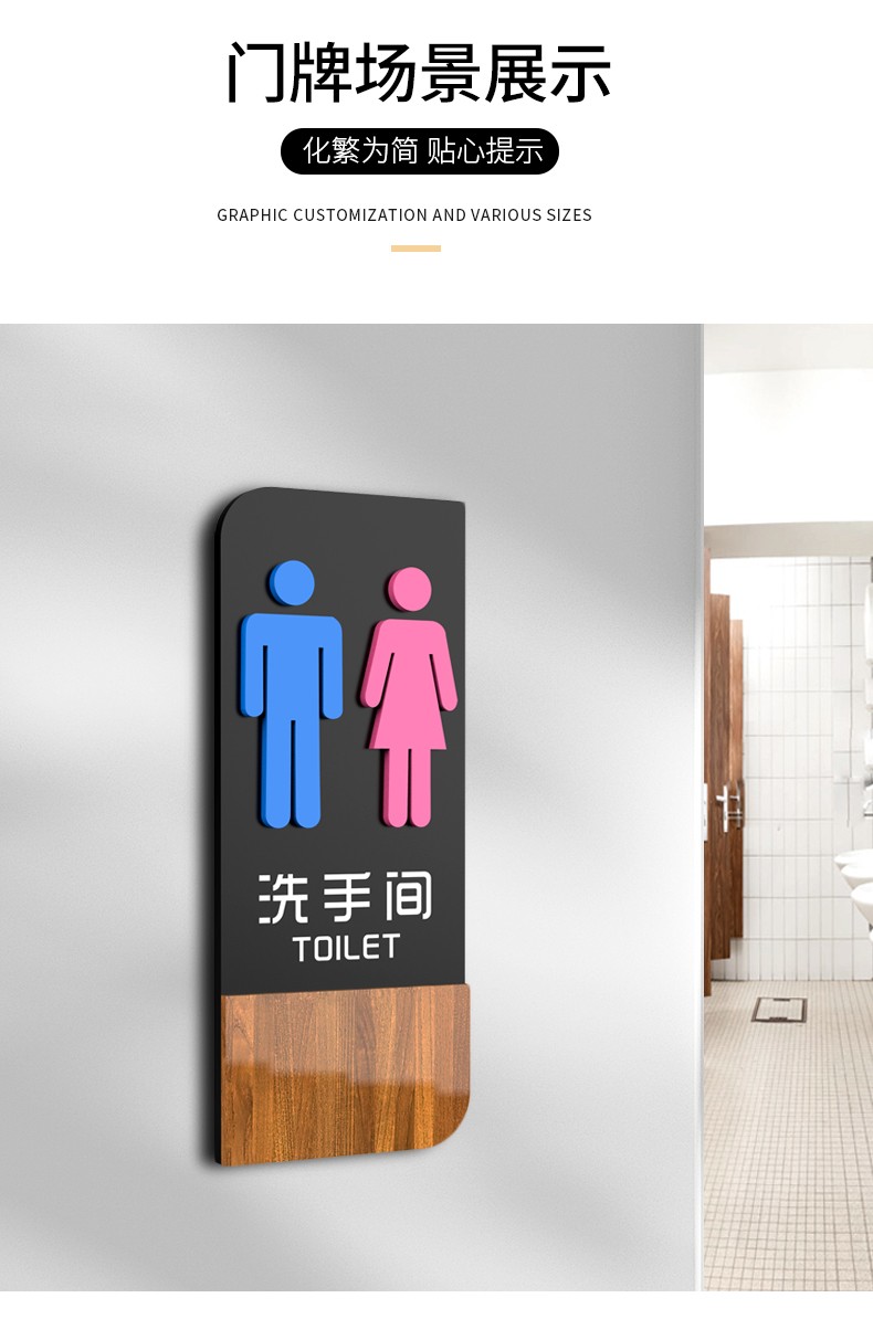 我們匠心獨運,推出木紋風格男女衛生間標識牌,將自然元素融入現代設計。采用高品質亞克力材質,模擬真實木紋質感,既環保又耐用。標識清晰,色彩鮮明,輕松指引方向。獨特的創意造型,為洗手間增添一抹溫馨與雅致。無論是商業場所、辦公大樓還是家庭住宅,都能完美融合,營造舒適便捷的如廁環境。