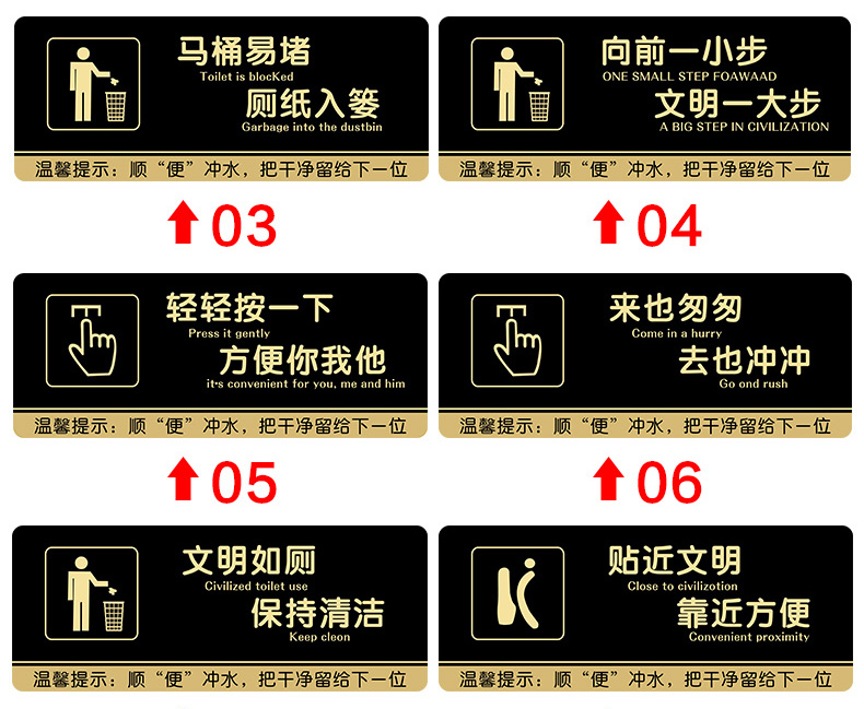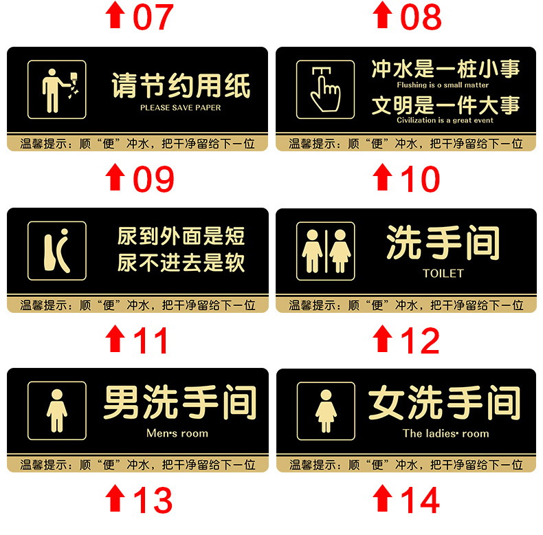 我們的亞克力男女衛生間標識牌,專為公共場所設計,采用高透明度亞克力材質,確保標識清晰可見。簡潔明了的圖案與文字,快速指引用戶找到所需設施。同時,配套“垃圾入紙簍”提示,倡導文明如廁,維護公共衛生。時尚耐用的設計,適用于各類公廁、商場、辦公樓等場所,讓每一次使用都成為一次愉快的體驗。