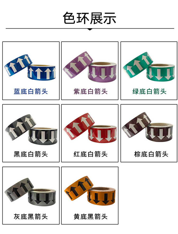 我們提供符合國標的8色管道流向標識色環,精準標注管道流向,確保安全高效管理。色環直徑可選5cm或10cm,清晰醒目,滿足不同管道尺寸需求。箭頭設計明確指示流向,預防誤操作。采用耐用材料,抗磨損、耐腐蝕,長期保持鮮艷色彩。廣泛應用于工業、化工、石油等領域,是管道系統標準化管理的重要工具。